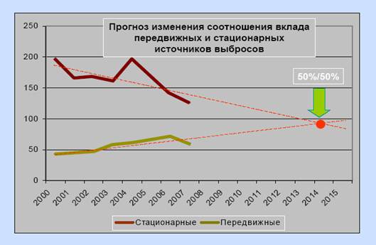 Прогноз изменения соотношения вклада передвижных и стационарных источников выбросов