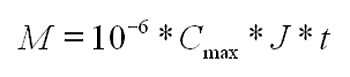 где Смах — максимальная концентрация загрязняющего вещества на выходе источника выделения (до очистки), г/м3; j — объемный расход газовоздушной смеси в единицу времени на выходе источника, м3/с; t — время работы оборудования в течение года, с.