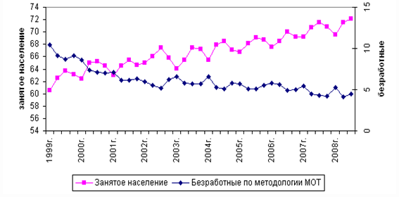 1.4 Безработица в России на 2008 и 2009 годы