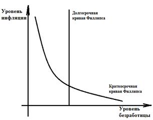 Рис. 1.1 Кривая Филлипса в краткосрочном и долгосрочном периодах