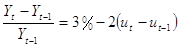 Yt-1 – фактический ВВП предыдущего года, т.е. в левой части уравнения записана формула отставания ВВП по годам,