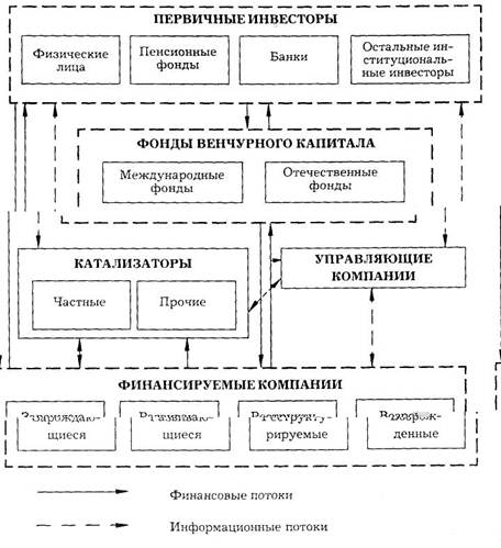 Сферой венчурного бизнеса являются два основных вида хозяйствующих субъектов: малые наукоемкие фирмы и представляющие им капитал венчурные компании, а также венчурные центры крупных корпораций, различные промежуточные и новые формы(7).(25, С. 216).