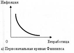Эта кривая была эмпирически открыта в конце 1950-х, когда английский экономист А. Филлипс (1914 - 1974), изучая экономическую статистику цен и занятости в Великобритании, предложил модель взаимосвязи этих показателей в виде нисходящей кривой (см рис. а).