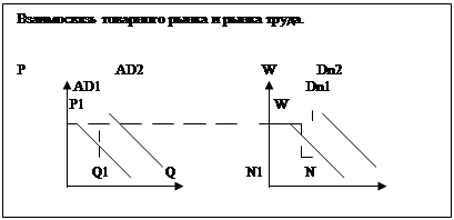 В соответствии с кейнсианским доходом зарплата как цена труда, заданна экзогенно и зависит от состояния рынка товаров и услуг. Рост цен на этом рынке определяет рост спроса на рынке труда. Кейнсианцы причины безработицы объясняют неспособностью рынка труда автоматически уравновесить спрос и предложение на рабочую силу (см. рис. 3.).