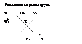 Равновесие на рынке труда наступает тогда, когда количество запрашиваемой рабочей силы равно количеству предлагаемого труда (см. рис. 5).