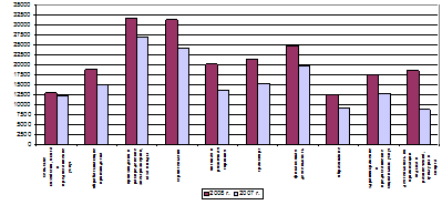 Отрасли социальной сферы представлены, в основном, бюджетными предприятиями и учреждениями, поэтому приведенные данные отражают положение по уровню зарплаты в бюджетной сфере. Принятые за последний период меры позволили увеличить среднюю заработную плату в бюджетных учреждениях в 2008 году к прошлому году в сфере социальной защиты на 41,5 %, в образовании – на 39,1 %, в здравоохранении – на 37,1 %.