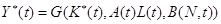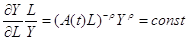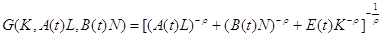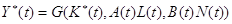 где G – неоклассическая функция (т.е. обладающая стандартными свойствами производственной функции, в частности, имеющая постоянную отдачу от масштаба – CRS). При этом темп прироста технического прогресса совпадает с темпом прироста душевого дохода: