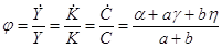 на сбалансированных траекториях, этот результат используется затем для вычисления этих темпов в модели с производственной функцией (1). Оказывается, что эти темпы зависят, в частности, от параметров