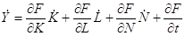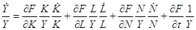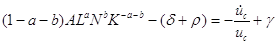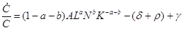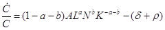 . Переменная времени опускается, где возможно, для упрощения обозначений. Предполагается, что труд и использование природных ресурсов меняются с постоянными темпами прироста, равными