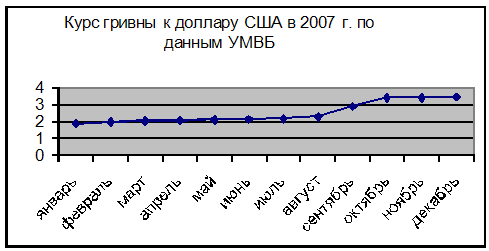 Рисунок 1.2 – Курс гривны по отношению к доллару на Украине в 2007 году