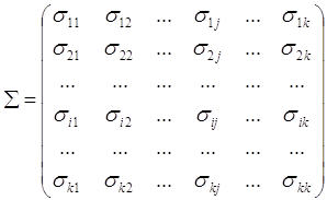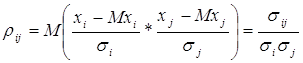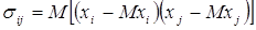 - центральный смешанный момент второго порядка, коэффициент ковариации i- й и j-й компонент вектора