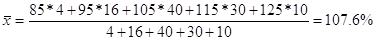 Используя среднюю арифметическую взвешенную, определим средний процент выполнения нормы:![]()