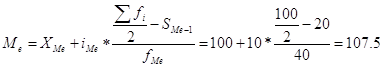 - нижняя граница медианного интервала «100-110», равная 100;