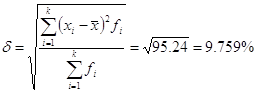 6)Среднее квадратическое отклонение показывает, на сколько в среднем отклоняются конкретные варианты признака от среднего значения и равно корню квадратному из дисперсии: