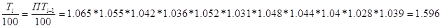 Средний темп роста ряда динамики определяется по формуле