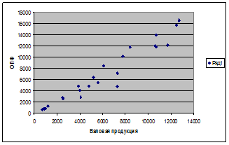 Вывод: Между стоимостью ОПФ и валовой продукцией прямая связь, с ростом ОПФ растет и валовая продукция.
