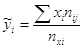 | i | Величина ОПФ, млрд. руб. | Середина интервала | Продукция в сопоставимых ценах, млрд. руб. | Всего nxi | Групповая средняя yj | |||||