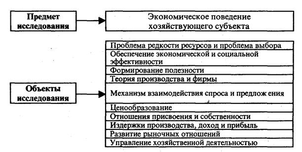 Рис.3. Предмет и объекты исследования современной микроэкономики