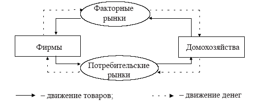 На схеме можно видеть, что, с одной стороны, домохозяйства предстают в роли продавцов каких-то факторов производства на соответствующих факторных рынках и получателей дохода от их продажи, а с другой -покупателей, использующих свои доходы для покупки потребительских товаров на соответствующих рынках. Фирмы являются и покупателями факторов у домохозяйств, и производителями нужных домохозяйствам товаров. Подобное взаимодействие происходит между множеством домохозяйств и фирм. Причем, как правило, покупает какой-то фактор у данного домохозяйства одна фирма, а продают ему товары другие фирмы.