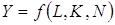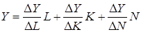 , земельных и других природных ресурсов (1.2). Это абсолютные факторы экономического роста, представленные в самом общем, т.е. в высокоагрегированном виде. Их воздействие на объем совокупного продукта описывается с помощью простейшей производственной функции:
