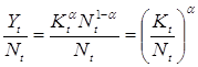 Так как параметром, обеспечивающим равновесный рост в модели Солоу, является капиталовооруженность труда, представим производственную функцию в виде:
