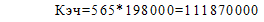 КЭЧ = 565 * 198000 = 111870000 руб.