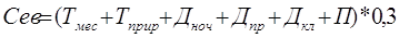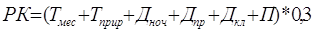 Змес= Тмес + Тприр + Дноч + Дпр+ Дкл + П + РК + Сев . (31)