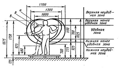 Б – зона досягаемости пальцев при вытянутой руке;