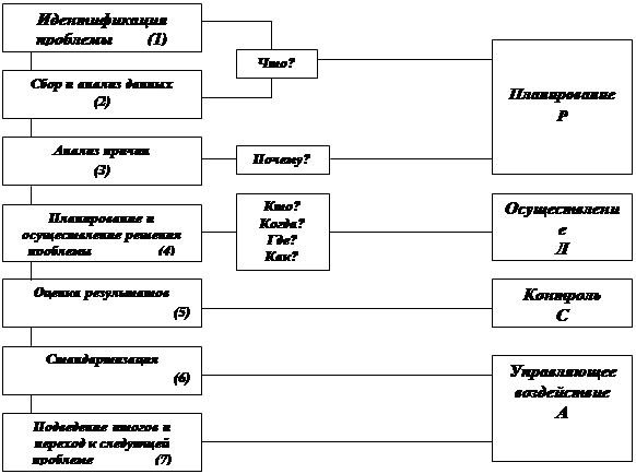 Управление любыми процессами является круговым процессом: планирование (Р) – осуществление (Д) – контроль (С) – управляющее воздействие (А).