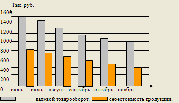 Рис. 3. Изменение валового товарооборота и себестоимости продукции за анализируемый период