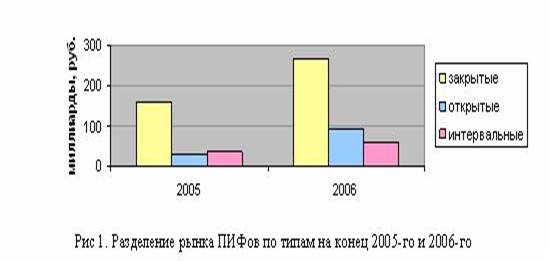 Если управляющая компания создает фонд на определенный промежуток времени, в течение которого она не выкупает и не продает паи, то такой фонд называется закрытым. Количество проданных паев на протяжении всей работы фонда одно и то же. Преимущества данного вида фондов в том, что его средства могут быть вложены в неликвидные активы, такие как недвижимость и венчурные предприятия. Работа закрытых ПИФов не так прозрачна, как открытых, они не публикуют ежедневные данные о стоимости чистых активов и стоимости пая. Таким образом, деятельность закрытых фондов сложнее анализировать, поэтому они не участвуют в большинстве рейтингов. В отличие от запада, где доля открытых фондов значительно превышает закрытые, в России они являются наиболее значительным по стоимости активов инструментом рынка коллективных инвестиций (по данным независимой лиги управляющих на конец 2006 года: стоимость чистых активов 267,8 млрд. руб., что составляет 64% рынка ПИФов). Это преимущество вызвано колоссальным ростом цен на недвижимость, к которой имеют доступ только закрытые ПИФы (10, c. 154-158).
