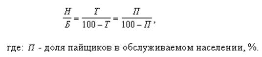 При среднестатистическом удельном равенстве покупок пайщика и постороннего соблюдается следующее условие(2)(9):