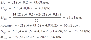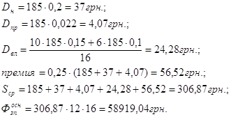Оклад 185 грн., Чяв=16 чел., Чсп=18 чел.,