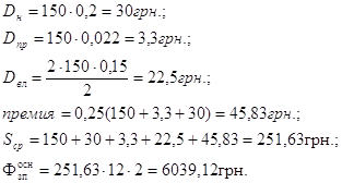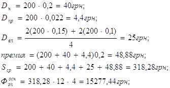Оклад 200 грн., Чяв=1 чел., Чсп=1чел.,