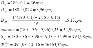 Оклад 180 грн., Чяв= 1 чел., Чсп= 1 чел.,
