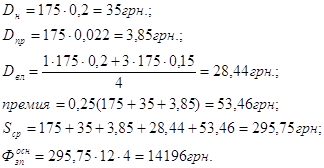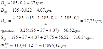 Оклад 185 грн., Чяв=4 чел., Чсп=4 чел.;