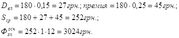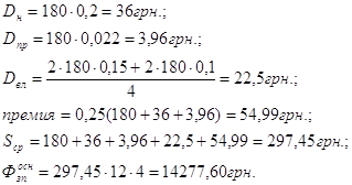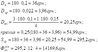 Оклад 180 грн., Чяв=4чел., Чсп=4чел.,