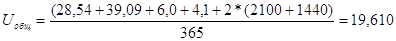 Uобщ=(Uп+Uв+Uпор.п.+Uпор.в.)+2*(Uс/п+Uб/п)/365 (тыс.ваг.) (1.4)