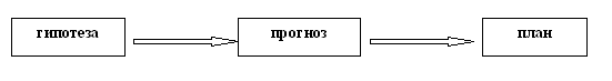 Планирование является одной из форм предвидения. В зависимости от степени конкретности и характера воздействия на исследуемые процессы различают три формы: гипотезу, прогноз, план. Гипотеза характеризует научное предвидение на уровне общей теории, раскрытие закономерностей и причинно-следственных связей. Прогноз имеет большую определенность, основывается не только на количественных, но и на качественных параметрах, носит вероятностный характер. План представляет собой постановку точно определенной цели (целей) и предвидение конкретных, детальных событий, в нем фиксируются пути и средства достижения целей. В плане предвидение получает наибольшую конкретность и определенность (рис. 1.2).