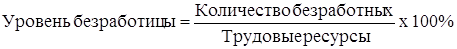 Уровень безработицы—это доля безработной части трудовых ресурсов общества: