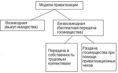 Вместе с тем, несмотря на разнообразие определений можно выделить две основные модели приватизации: платная и бесплатная. Каждая из которых опирается на определенные доводы и аргументы. (Рис 1.1)