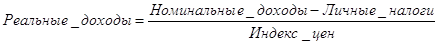 Реальный доход представляет собой то количество товаров и услуг, которое можно приобрести на располагаемый доход, т. е. это располагаемый доход с учетом инфляции. (3)