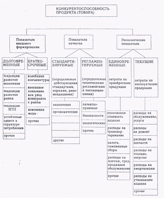 Вообще некорректно отождествлять «конкурентоспособность» с « уровнем качества» и «техническим уровнем продукции» по следующим соображениям. Согласно ГОСТУ 15.467–79, уровень качества продукции – это относительная характеристика качества, основанная на сравнении значений показателей качества оцениваемой продукции с базовыми значениями соответствующих показателей. Технический уровень продукции, согласно тому же стандарту, также относительная характеристика качества, основанная на сопоставлении значений показателей, характеризующих техническое совершенство продукции с соответствующими базовыми значениями.