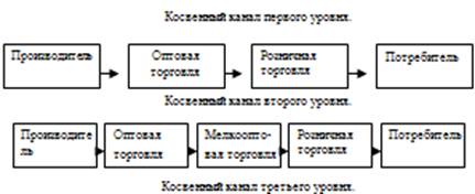 Путь (канал) сбыта — это способ, с помощью которого товары перемещаются от производителя к потребителю. От выбранного канала зависят скорость, время, эффективность движения и качество поставки товара от производителя к конечному потребителю. В случае, когда система предусматривает участие в сбыте торговых посредников и отличие между производителем и конечным потребителем опосредованы, такая их связь носит название косвенного канала. Такие каналы строятся на использовании опыта посредников и различных форм сотрудничества с торговой сетью. Здесь фирма перекладывает значительную часть издержек по сбыту и соответствующую долю риска на формально не зависимых контрагентов, снижая контроль за товародвижением, и, как следствие, уступает им часть коммерческой выгоды. Существуют также смешанные каналы, которые объединяют черты первых двух каналов товародвижения.