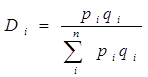 де уi – показник ринку (товарообіг, ціна, запаси тощо) в і-мe регіоні, фірмі, підприємстві і т. ін.;