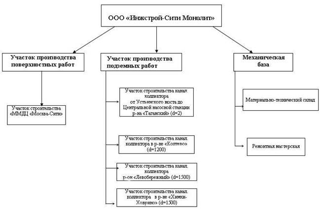 Рис. 2.1.1 Производственная структура ООО «Инжстрой-Сити Монолит»