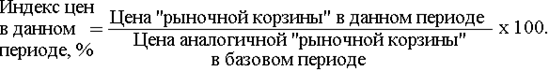 Первый - измерение с помощью индекса цен. Используется индекс цен валового национального продукта, индивидуальных потребительских цен и индивидуальных оптовых цен. Для вычисления индекса берут соотношение между совокупной ценой определенного набора товаров и услуг ("рыночной корзиной") выражается в процентах. И так, для оценки и измерения инфляции используют показатель индекса потребительских цен. Индекс потребительских цен (ИПЦ) измеряет соотношение между покупной ценой определенного набора потребительских товаров и услуг («рыночная корзина») для данного периода с совокупной ценой идентичной и сходной группы товаров и услуг в базовом периоде.