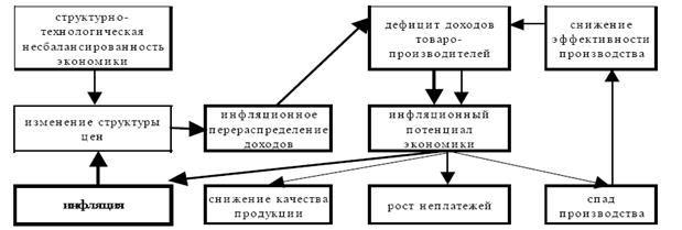 Рис. 1.3 – Принципиальные связи основных элементов инфляционного механизма