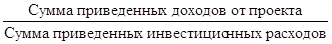 4.Показатель рентабельности, или индекс доходности, инвестиционного проекта представляет собой отношение приведенных доходов к приведенным на ту же дату инвестиционным расходам: