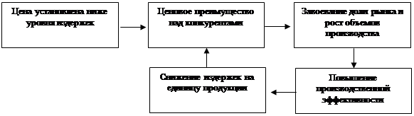 Сущность данной стратегии заключается в установлении такой цены, которая позволила бы быстро создать массовый рынок сбыта. Стратегия реализуема, если между издержками производства и его объемом существует устойчивая обратная связь. Данная зависимость получила название кривой опыта или эффекта экономии на масштабах производства. Предполагается, что рост объема производства приведет к существенному снижению удельных издержек